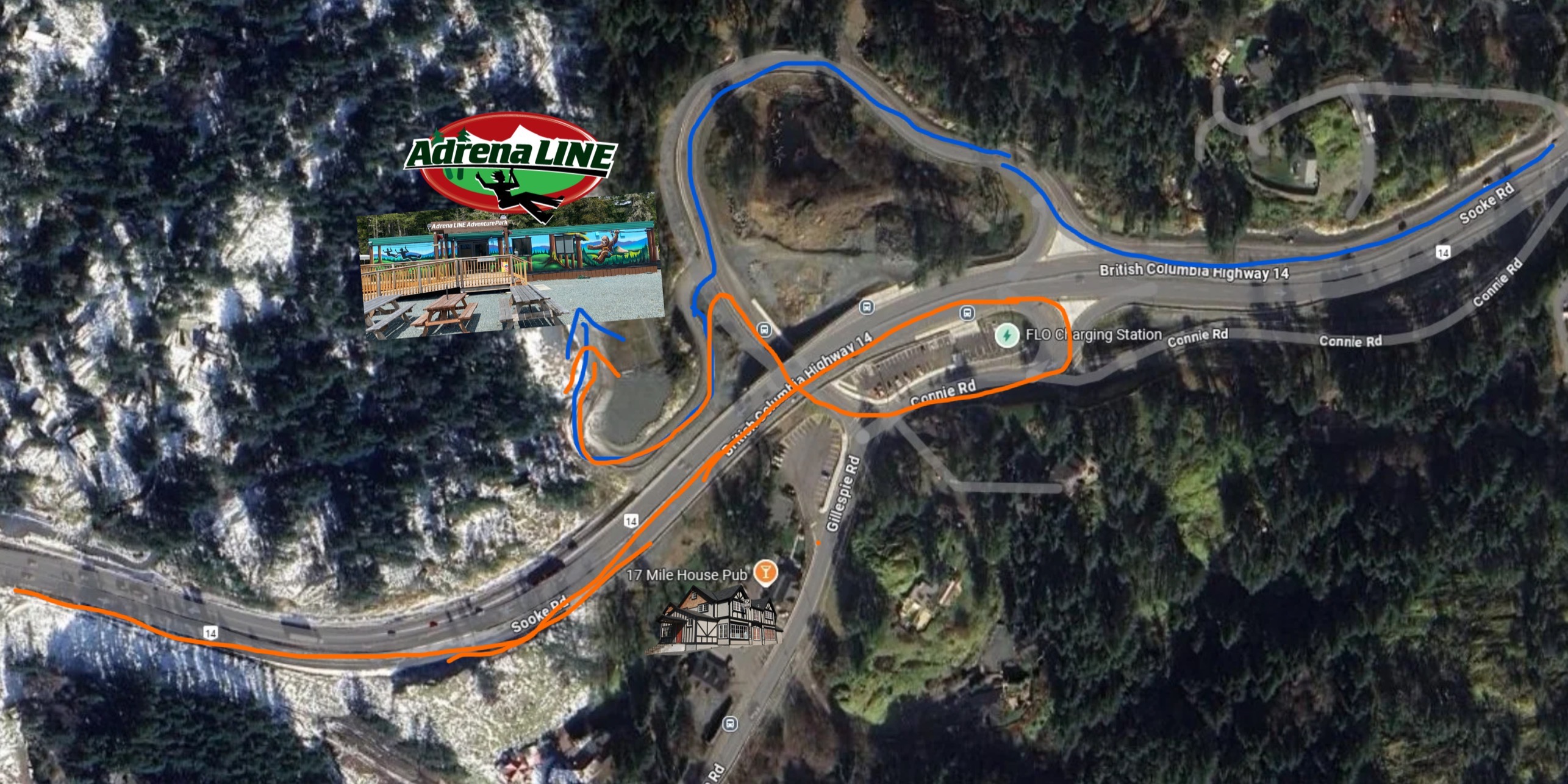 From Downtown Victoria to Adrena LINE – please allow 45 minutes travelling time
